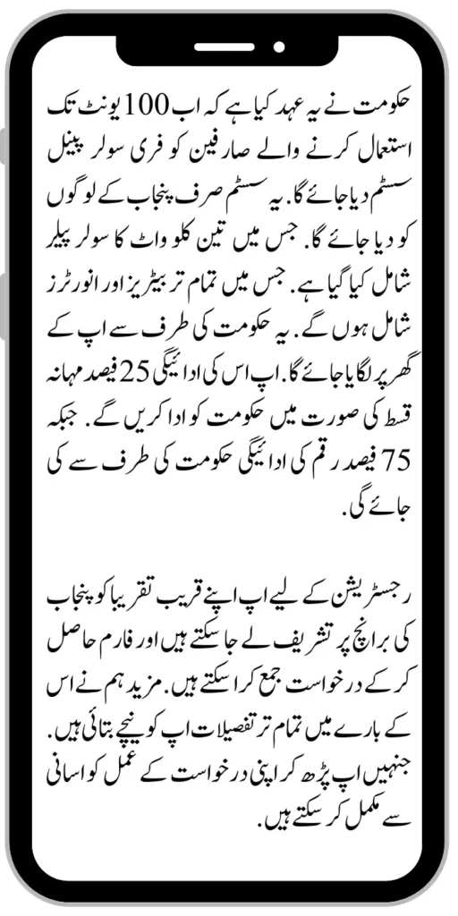 The Punjab government has introduced a solar panel scheme for the poor and deserving people who use electricity from 100 to 3 solar panels. You can get a three-watt solar balance system installed at your home with this scheme. Which will be installed by the government at your house for free. 25% of the amount will be paid monthly while 75% will be paid by the government. Keep visiting our website 8171 Ehsaas for more information and updates.
