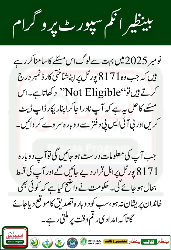 These are the most frequent reasons why many families see “CNIC Not Showing Eligible” on the 8171 portal or SMS.
