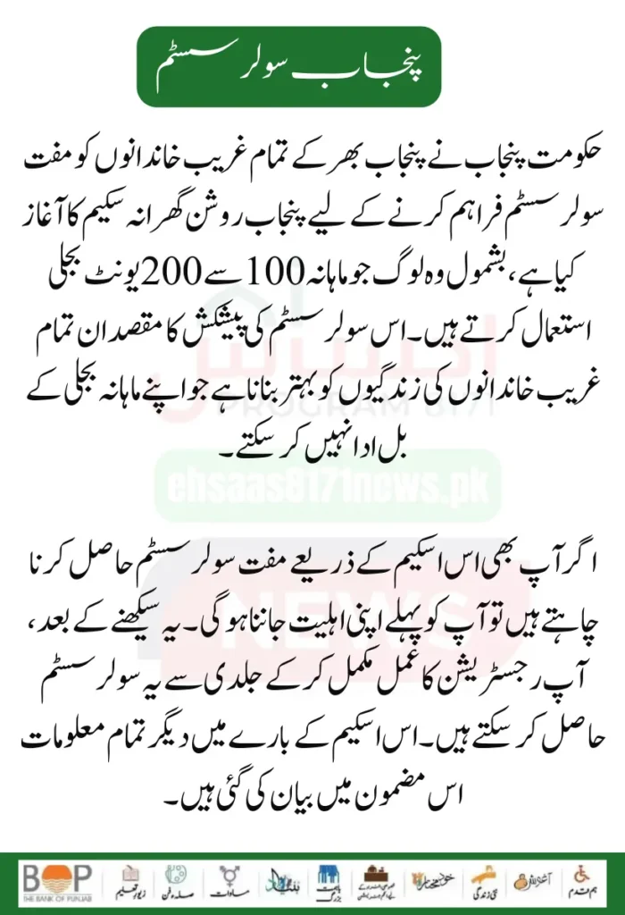 You must know your eligibility for a free Punjab Roshan Gharana Scheme solar system. This is the eligibility criteria because these free solar systems will be provided to all eligible families.