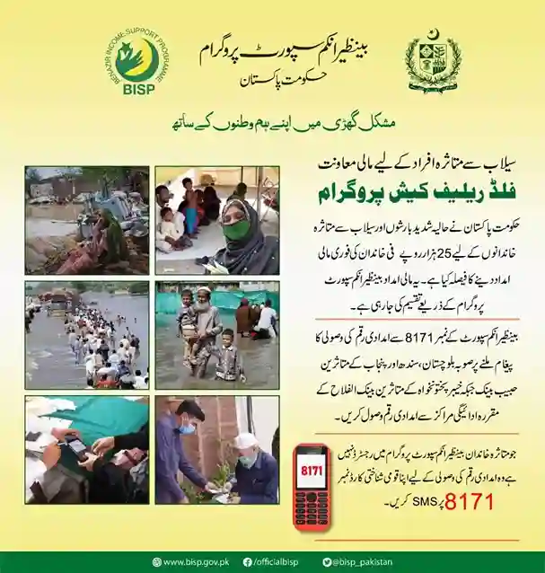After telling the beneficiary, the package’s detailed delivery list is prepared. Then find our transfer from the Ministry of Finance to the Benazir scheme. After the fund transfer to BISP, Cash is transferred to the women’s account, which is collected. SMS from 8171 is sent to your registration sim when payment is credited.