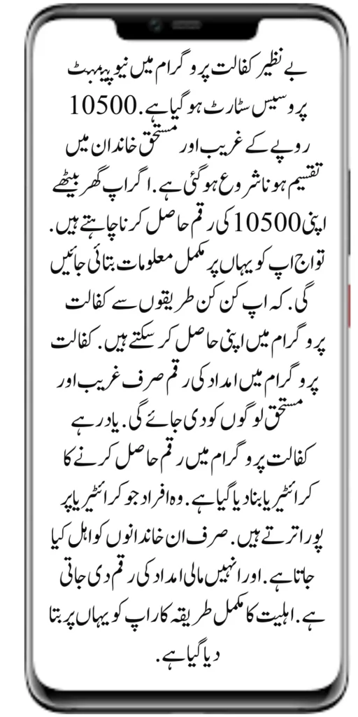 In the Benazir Kafaalat 10500 program, the aid money will be given only to the poor and deserving people. It should be remembered that the criteria for getting money in the sponsorship program have been met. Those individuals who fulfil the criteria. Only those families are eligible. And they are given financial assistance. The complete eligibility procedure is given here.