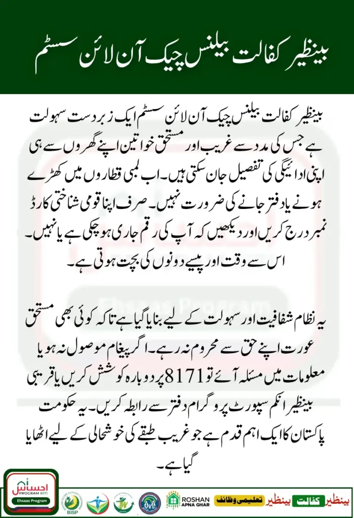 Checking your Benazir Kafalat balance online is extremely simple. You don’t need any special knowledge or computer skills. Just follow the steps carefully and you will know your balance in minutes.
