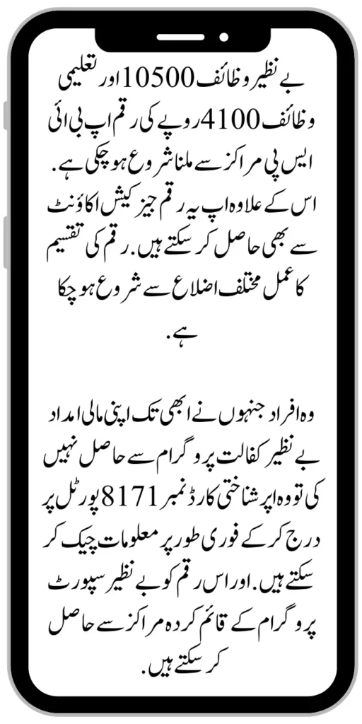 Those people who have not yet received their financial assistance from the Benazir Kafalat program can check the information immediately by entering the upper ID card number 8171 on the portal. This amount can be obtained from the centres established by the Benazir Support Program.
