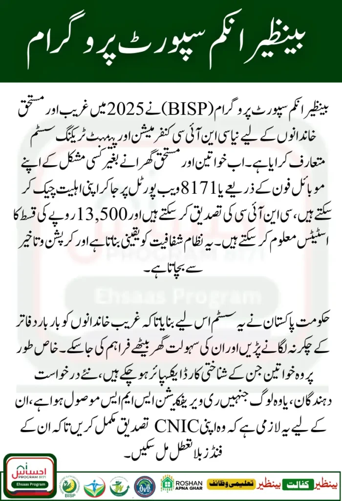 The 2025 update has made CNIC confirmation mandatory for certain groups of beneficiaries. Without completing this process, eligible families may face delays or even temporary suspension of payments.