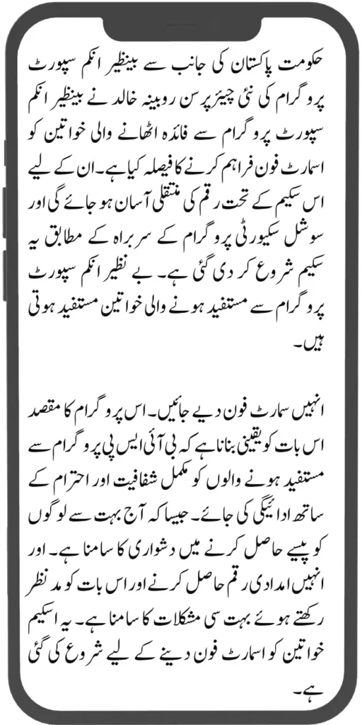 If you want to know all the information about the Benazir Income Support Program smartphone. Which women will be given smartphones and how will they be given? The complete procedure has been explained here. If you want to know any other questions related to this, you can find complete information by contacting Ehsaa8171news.pk
