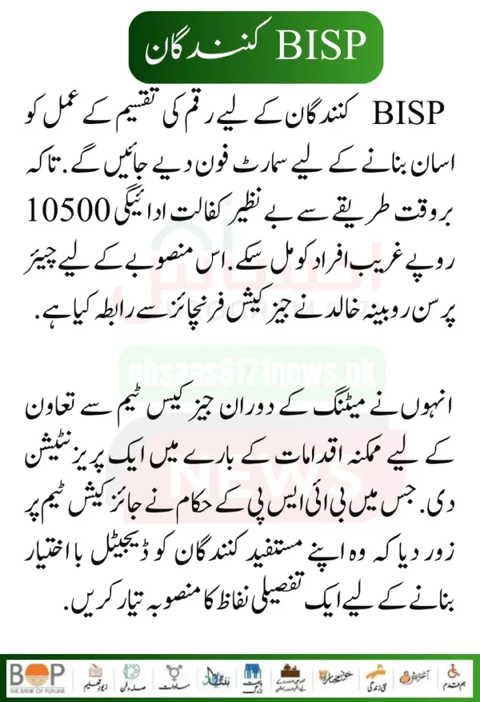Chairperson Rubina Khalid has emphasized the steps to provide smartphones to the BISP Women Beneficiaries and to make the transfer of income easier. Which will soon be implemented by BISP. So that the process of distribution of money can be completed transparently. And the poor and deserving people can get their maintenance payment of 10500 rupees in an easy way.