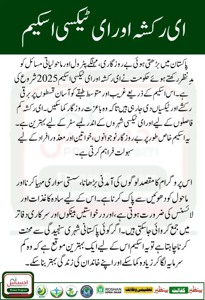 E Rickshaws and E Taxis are battery-powered vehicles that are cheaper to run, easy to maintain, and environmentally friendly. The schemes are designed not only to give financial relief but also to create new job opportunities in both urban and rural areas. The government is also offering loans and installment-based payment plans so that applicants do not face heavy financial burdens in the beginning.