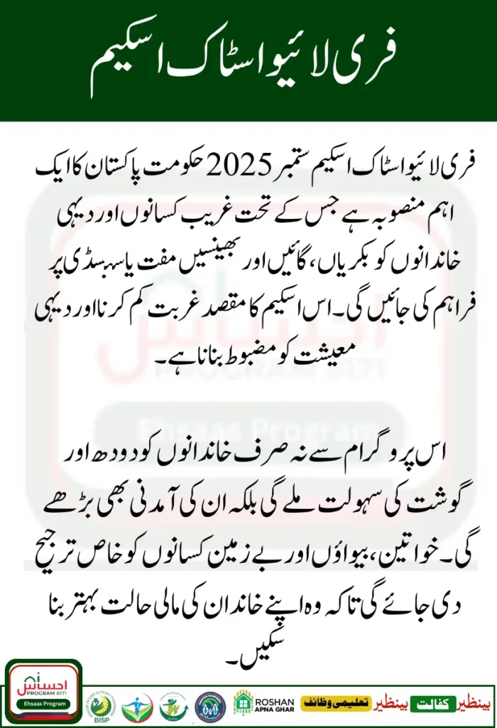 Pakistan is an agricultural country where a large part of the population depends on farming and Free Livestock Scheme September 2025 for their livelihood. However, due to increasing prices of animals, lack of proper facilities, and financial struggles, many poor farmers and families cannot afford to buy livestock. To solve this problem, the government has launched the Free Livestock Scheme September 2025. This initiative is designed to help low-income farmers, widows, and rural households by providing them with animals free of cost or on highly subsidized rates.