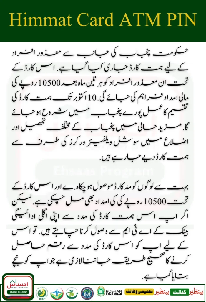 Recently, the government of Punjab has started giving courage cards to disabled people. The process of amounting and distribution of Hemat Cards in certain districts of Punjab is going on. You must generate an ATM PIN for how you will receive your new payment. Regarding which you have been told all the procedures. You can visit our website for any further information.