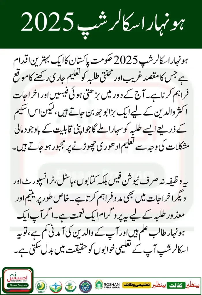 Every year, thousands of students perform well in their matric, intermediate, and university exams but face financial hurdles. For a poor family, even paying a semester fee or buying books becomes difficult. This is where the Honhaar Scholarship 2025 becomes a blessing.