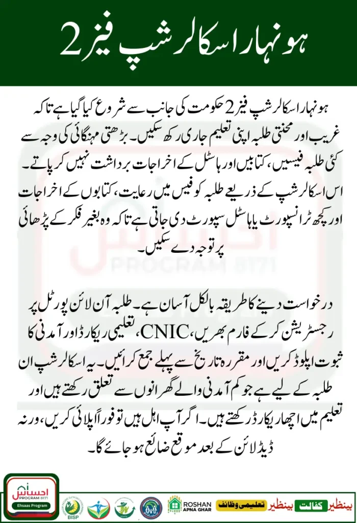 The Honhaar Scholarship Phase 2 is a golden opportunity for students who want to continue their education without financial pressure. With simple online registration, easy-to-understand requirements, and genuine benefits, this program is a real blessing for the hardworking youth of Pakistan.