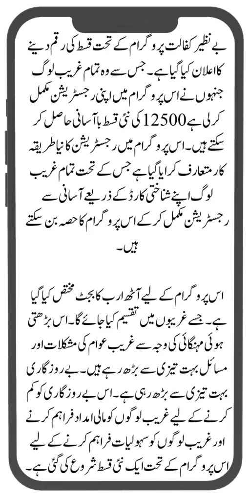 Under the Benazir Kafaalat program, it has been announced that the new instalment amount will be provided to all eligible people up to 12500 new instalment amount. All people can easily register themselves through an ID card. A budget of eight billion has been allocated for this program. More information about it is listed in this article which you can read up to get all the information about this program.