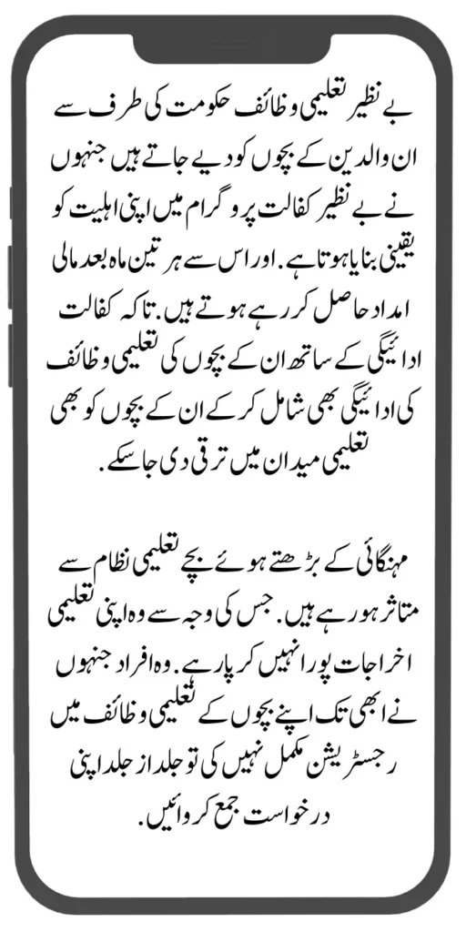 This education stipend amount will be given only to the children of eligible parents who are already receiving sponsorship payments in the Benazir kafaalat program. Ineligible students can get the payment of this educational scholarship only after completing their registration process.