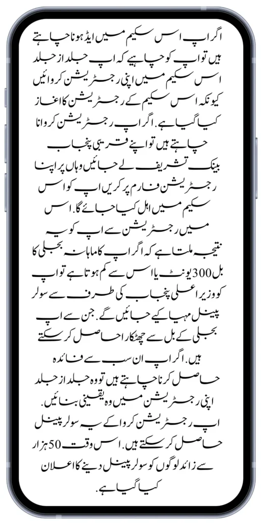 If you want to register yourself in this, then go to Punjab Bank and fill out your form. After filling out your form, you are registered in this scheme. Whatever information you have to write immediately, you have to write it exactly right. Solar panels will not be provided to you if you give the wrong information. This scheme aims to reduce the poverty rate in Punjab and to improve the living conditions of the poor people.