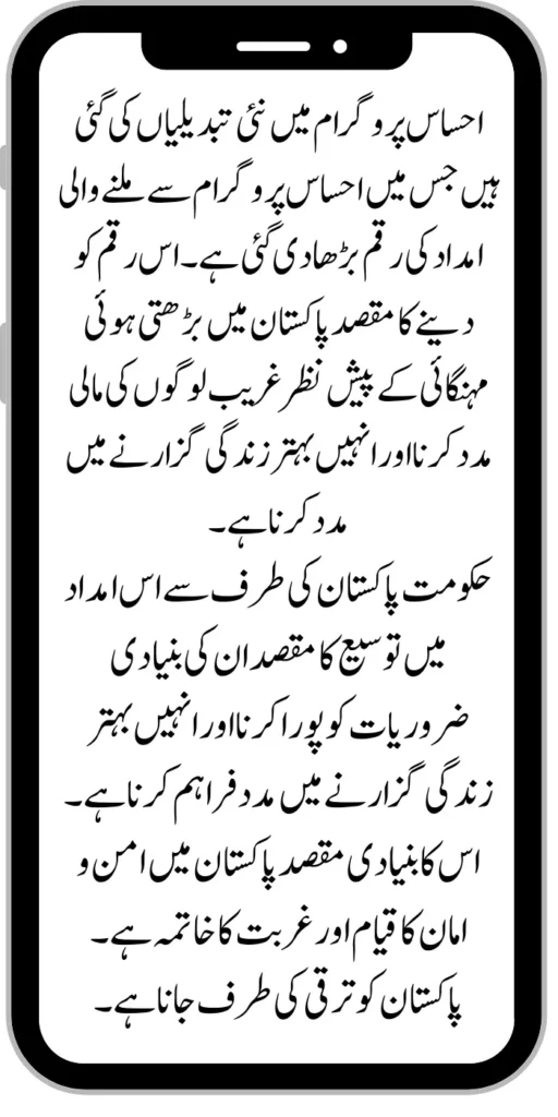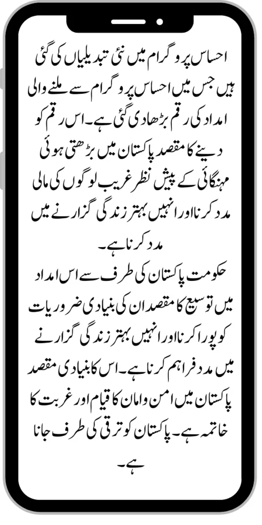 New changes have been made in the Ehsaas program in which the amount of assistance received from the Ehsaas program has been increased. The purpose of giving this money is to provide financial assistance to poor people given the rising inflation in Pakistan and to help them lead a better life.